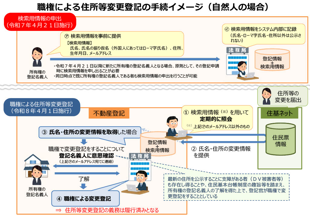 ②法務局が定期的に住基ネットに照会して住所等の変更がないか確認する